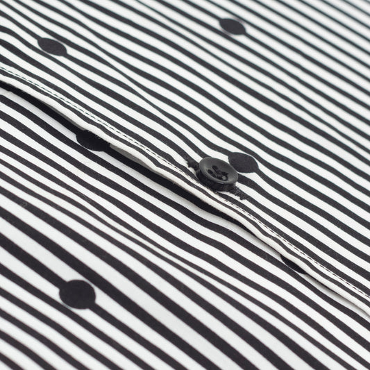 Wrinkle-Resistant Poly Cotton Black Monochrome Striped & Dotted Shirt