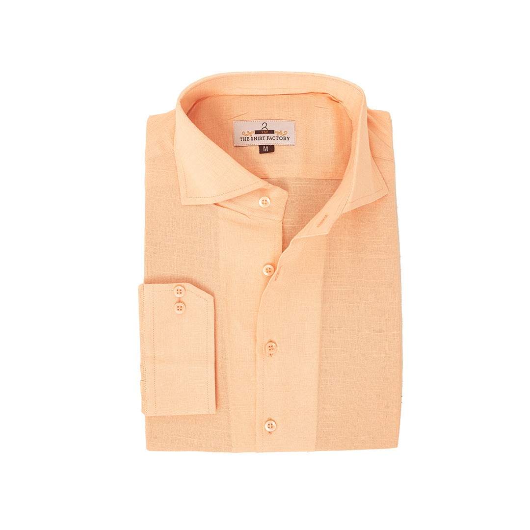 Design: Peach button-down shirt with the signature crisp and slightly textured finish of pure linen